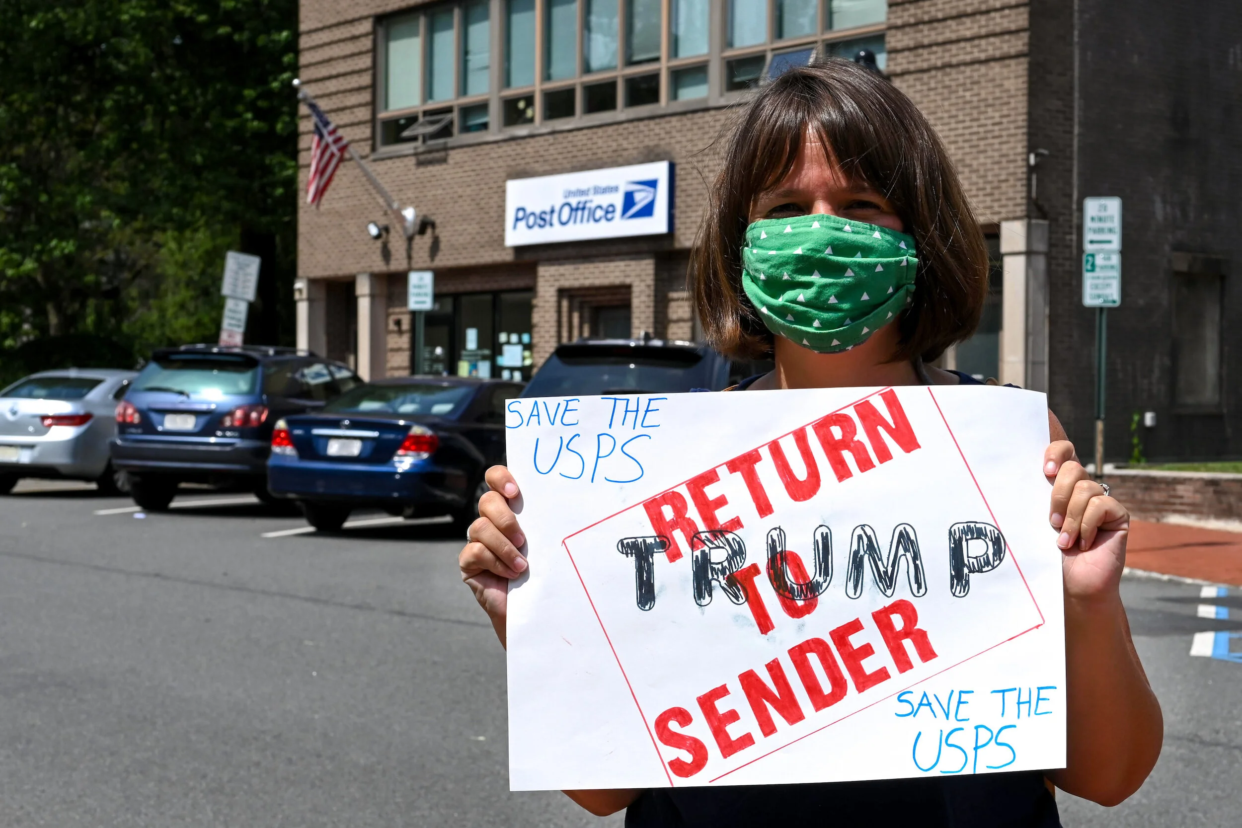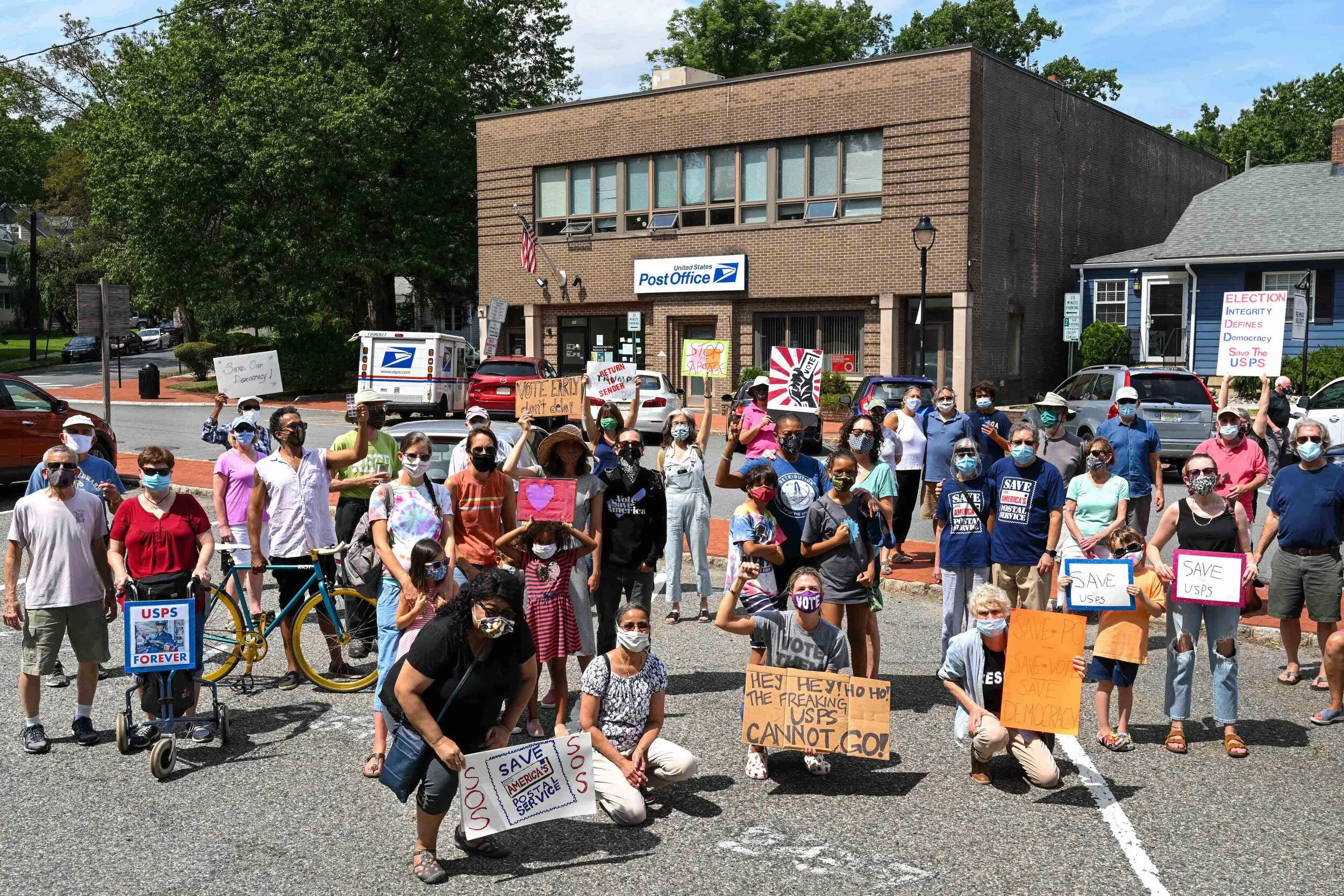 SOMA Action joined 20 other grassroots progressive groups across New Jersey on Friday, August 21 in holding rallies at local post offices. Eighty concerned community members showed up with masks on and signs held high, as several speakers emphasized the need to push back on the administration's efforts to disrupt postal service and the upcoming election. (Check out the photos below from SOMA Action member Megan Yates.)
